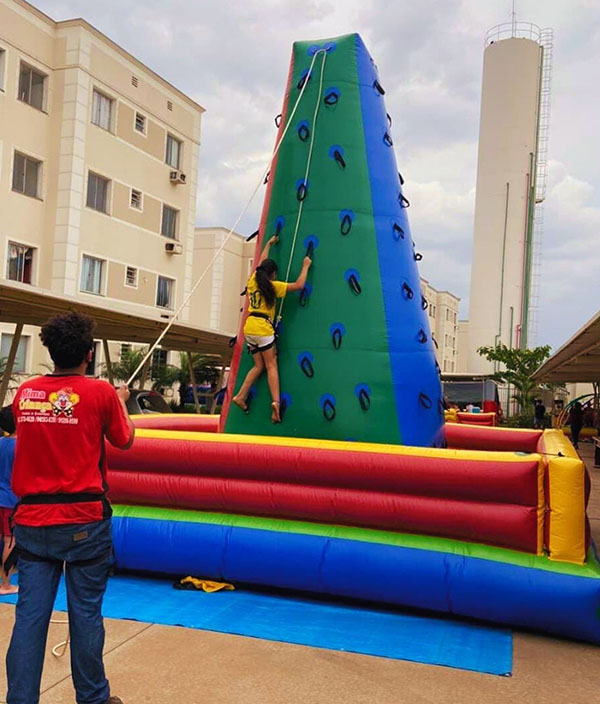 A Escalada Inflável é o desafio perfeito para as crianças que adoram aventura e movimento! Com um design seguro e colorido, este brinquedo inflável permite que os pequenos escalem, testem suas habilidades e superem obstáculos até chegar ao topo. Ideal para festas e eventos, a Escalada Inflável oferece uma experiência emocionante, promovendo a atividade física e a interação entre os participantes. Cada subida é uma nova conquista, cheia de risadas e diversão garantida!