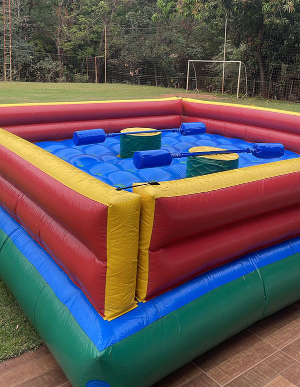 O Brinquedo Inflável Guerra de Cotonete é a atração perfeita para quem quer testar sua força e equilíbrio de uma maneira divertida e segura! Inspirado nas clássicas arenas de duelo, os participantes se enfrentam em cima de uma plataforma inflável, tentando derrubar o oponente com cotonetes gigantes de espuma. Ideal para festas, eventos e competições amistosas, esse brinquedo garante risadas e desafios emocionantes para todas as idades. Com muita adrenalina e diversão garantida, a Guerra de Cotonete é a disputa onde estratégia e habilidade se encontram para criar momentos inesquecíveis!